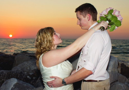 Local St Pete residents, Ashley & Ben, chose 10/11/12 to Tie the Knot on Sunset Beach. About a dozen family members joined in the celebration, blowing bubbles during the fun photography session. With the Minimalist Bliss package, they added the Sand Ceremony Table, a perfect anchor to their wedding site and placeholder for the sand ceremony, oyster shell with rings and bouquet. Pink was the accent color, in both Ben’s shirt and the bridal bouquet. A memorable date and memorable sunset. Congratulations Ashley & Ben!