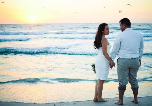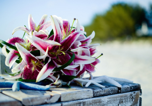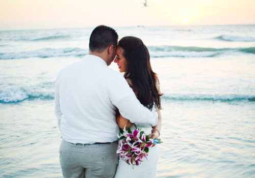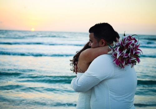 Can you call us up and get married a week later? You sure can! Massiel and Jansel did just that, as they eloped from NY the weekend of 10/26 for a romantic seaside wedding on Sunset Beach. They’ve known each other since childhood, so it was especially romantic to help them Tie the Knot. Just the two of them, the sand ceremony table and a gorgeous bouquet of Stargazer Lilies at sunset. They loved our photography props and clearly could not stop smiling at one another. Wishing Massiel & Jansel much happiness!