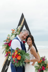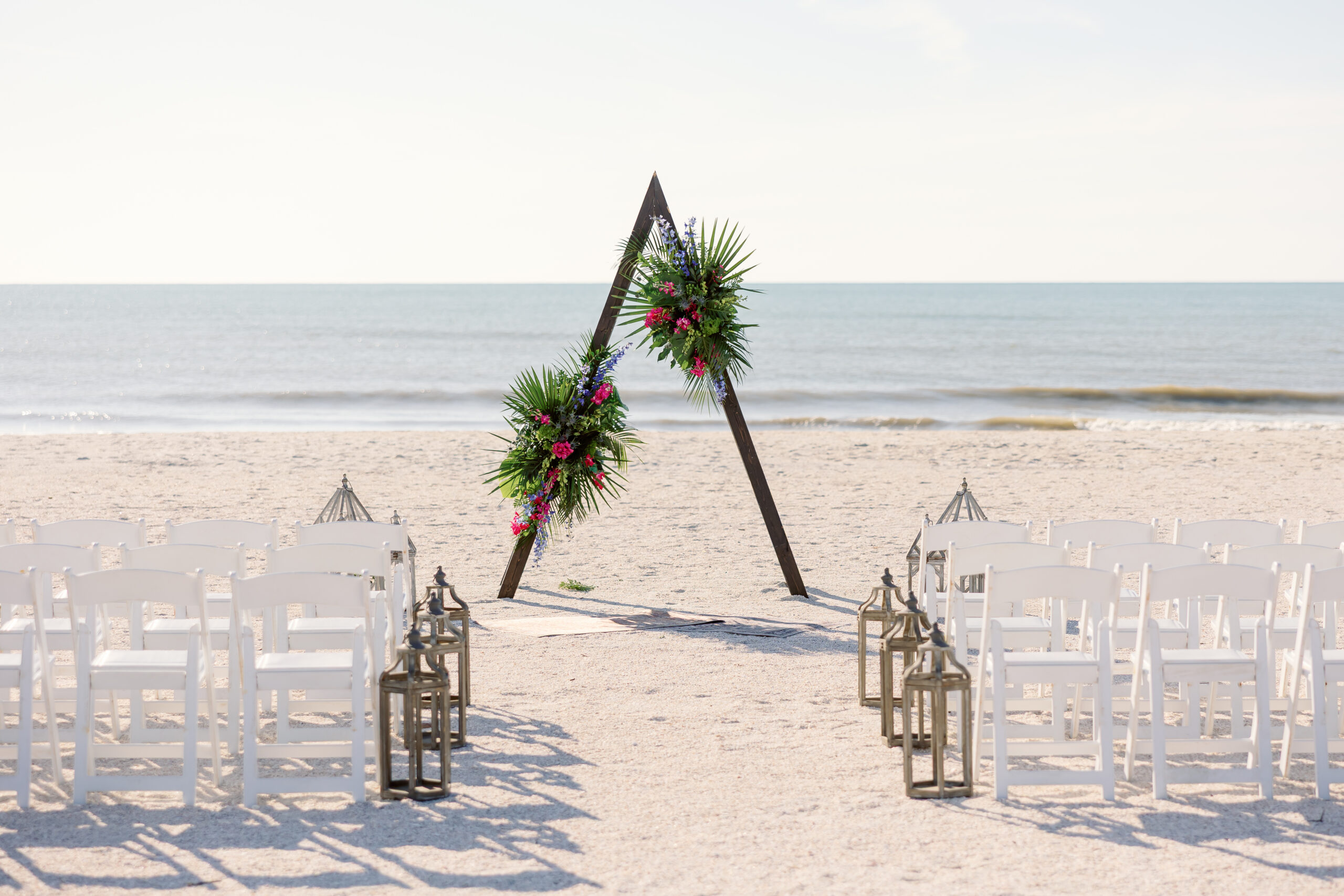 This 1 hour event includes our A-framed wedding arbor (dark or white-washed), cluster of lanterns, complimentary seating, fresh flowers on the arbor & for the couple, recorded music (genre), officiant and photography – perfect for a beach celebration!