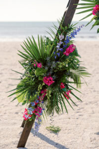 - A-Frame –Hand-crafted dark chocolate or white washed wooden geometric design, Decorated with fresh, designer’s choice tropical flowers & greenery. Want a custom look? You can upgrade the flower selections!
