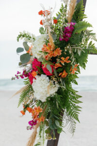 - Complimentary for the Couple Only– Your choice of 1 bouquet + 1 coordinating bout, 2 bouquets or 2 bouts. Perfect for the lucky couple! Tropical arrangements created by our designer.